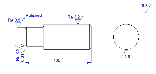 Os símbolos de acabamento de superfície são criados introduzindo o valor da rugosidade ou pela seleção de um símbolo para superfícies não maquinadas. Estes símbolos podem ser associados a uma linha, arco ou linha de chamada de cota, ou ainda simplesmente ficar soltas. Quando ligadas a um objeto 2D, é possível arrastar o símbolo ao redor do objeto antes de selecionar a sua posição final.