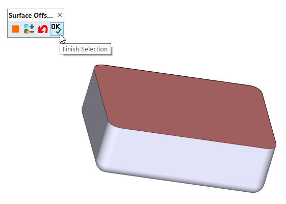 Shell is created as the offset patches are connected to the selected patches at a given thickness. Select patches on a solid first. Then define a thickness. You can select whether the resulting shell is created as outer layer to the selected patches (creation in a direction of the normal), or the selected patches are outer layer of resulting shell (creation against a direction of the normal). You can select also if the original solid remains in space or is removed after the shell creation. In both cases, copy of the shell pattern is stored in the shell object and remains available for further shell shape editing.