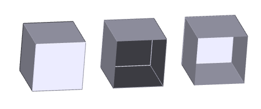 | Select One Side of Shell – click a shell, created in VariCAD as offset of patches. Entire surface is selected. Option may be used, for instance, if you need to export a shell with defined thickness into a system demanding only open shell with zero thickness. |