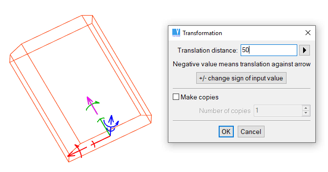Example of solid’s transformation. Solid is translated along its Z axis.