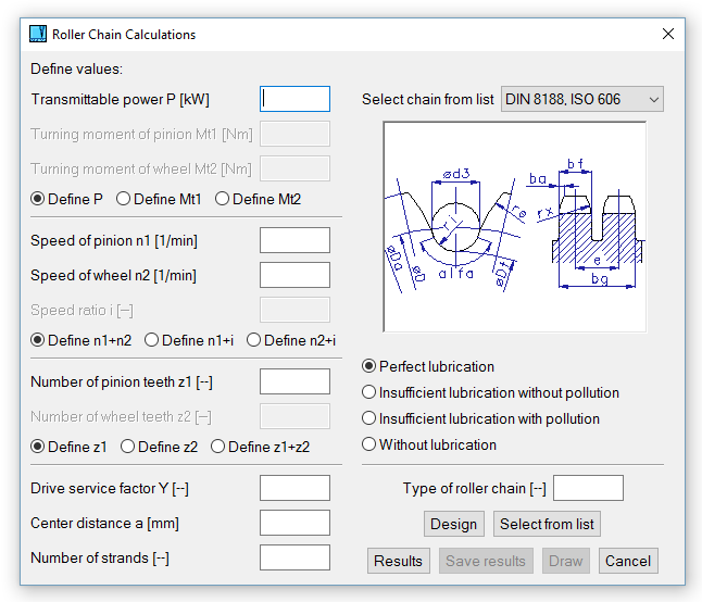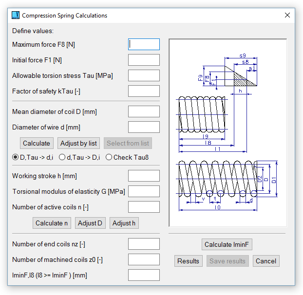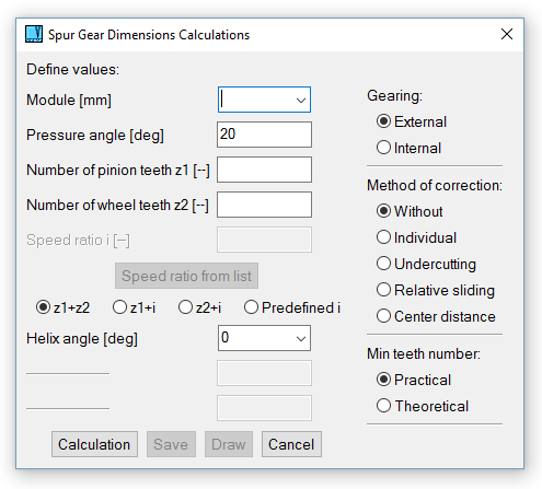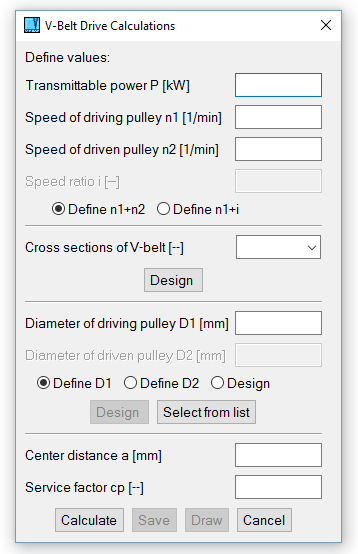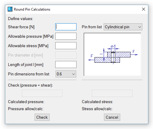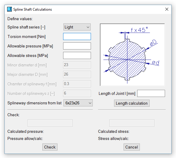 Part calculations can be accessed from Objects / Calculations. Only ISO units (mm, N, MPa etc.) are used for calculations. Values can be calculated for the following mechanical parts:
