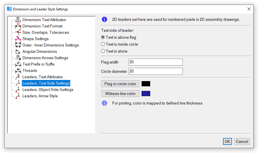 Leader style definition, text side of leader