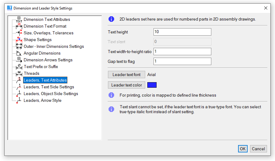Leader style in 2D can be modified as well as a style of dimensions. Leader style settings are part of dimension settings. Leaders themselves are sub-part of dimensions objects.